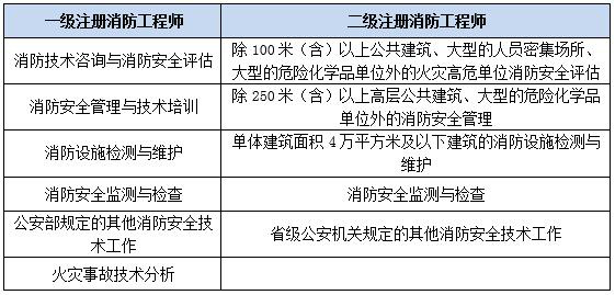 一、二级注册消防工程师的区别主要体现在以下几点上: